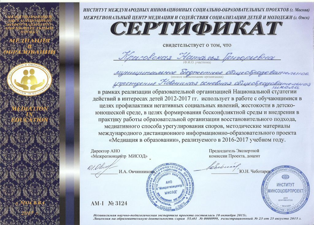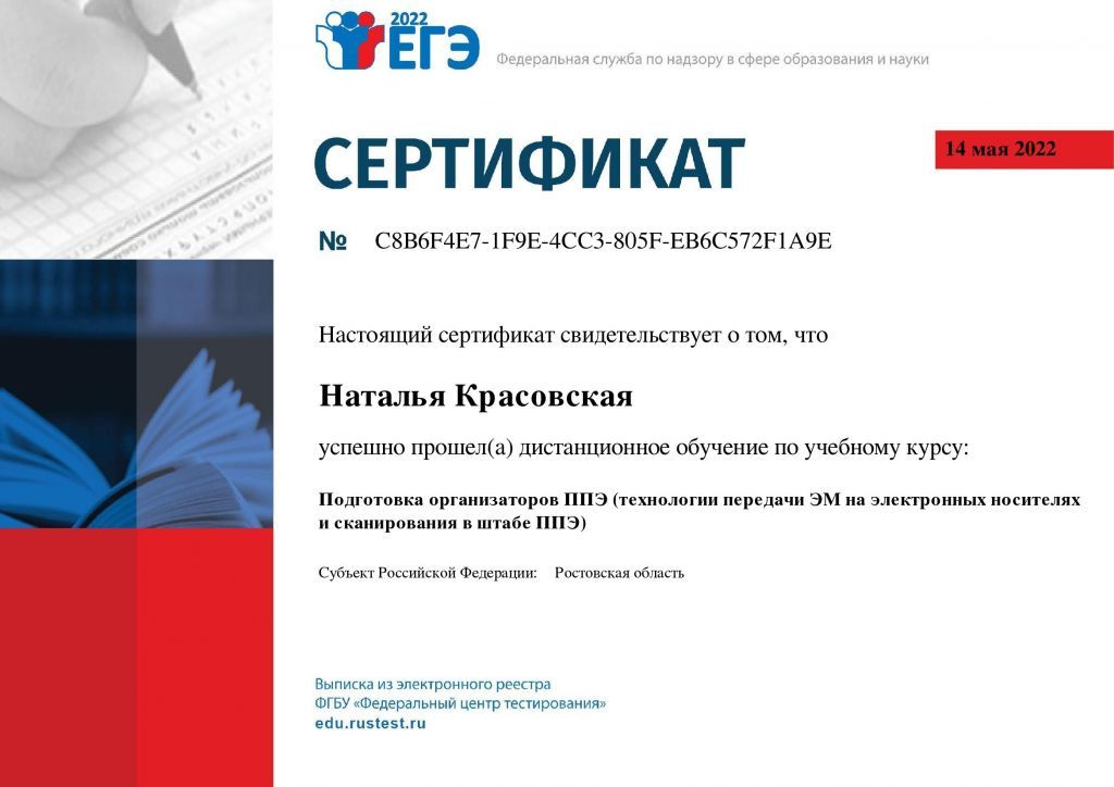 № удостоверения: 3262